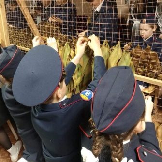 Школьники на уроках труда плетут маскировочные сети