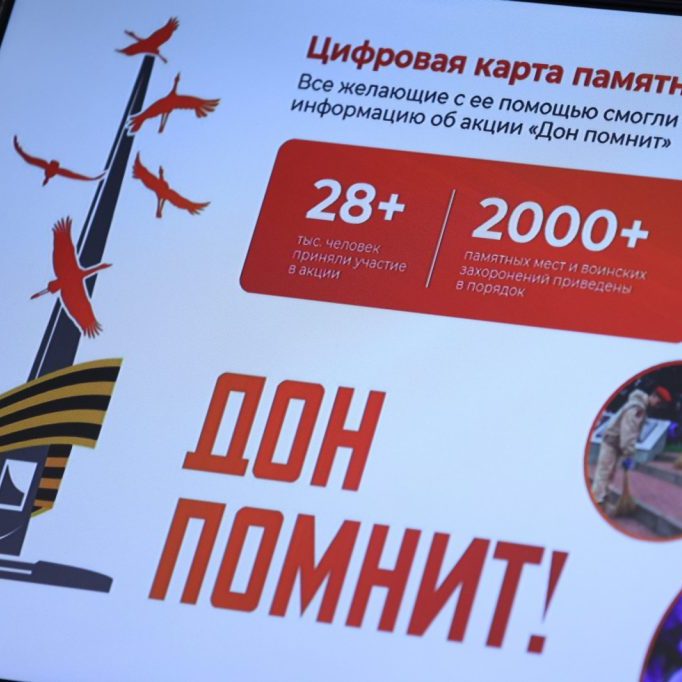 30 апреля на заседании организационного комитета по празднованию юбилея Победы подвели итоги патриотической акции «Дон помнит». Это была одна из самых масштабных акций в Ростовской области. В ней приняли участие больше 28 тысяч жителей донского края, а инициировал её руководитель региона Юрий Слюсарь. В преддверии 9 Мая наведён порядок на двух с лишним тысячах воинских захоронений, памятников, мемориалов, братских могил, обелисков. Во всех муниципалитетах волонтёры, школьники, трудовые коллективы присоединились к акции.