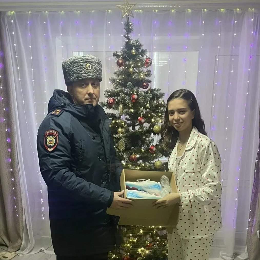 До чего же рада была Катя и в то же время удивлена, когда к ней домой с подарком пришёл полковник полиции! Алексей Нечаев поздравил девочку с Новым годом, вручил ей кроссовки и пожелал дальнейших успехов и новых спортивных побед.