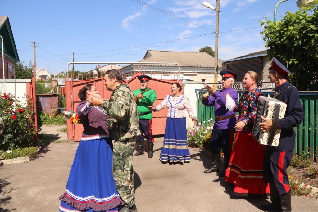 Юбиляра порадовало душевное выступление народного ансамбля «Вешка». Для именинника артисты под баян исполнили его любимые казачьи песни. Виновник торжества поблагодарил всех за внимание, подарки и под весёлую музыку вместе с участниками фольклорного коллектива пустился в пляс.