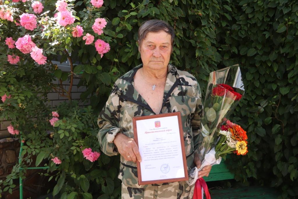 За многолетний, добросовестный труд, активную жизненную позицию, ответственность, прекрасные человеческие качества Николаю Дмитриевичу Печеникину вручили приветственный адрес главы Шолоховского района и памятный подарок.