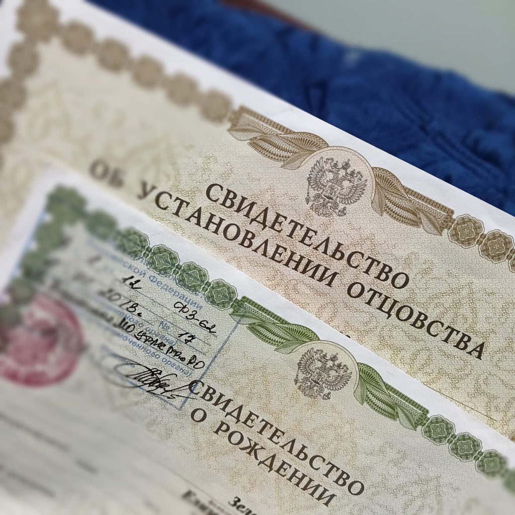 - свидетельство об установлении отцовства;