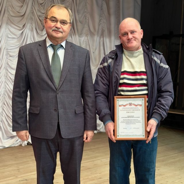 В станице Базковской во время отчёта о работе за прошедшие 10 месяцев глава Шолоховского района Олег Николаевич Дельнов вручил благодарственное письмо министерства сельского хозяйства и продовольствия Ростовской области слесарю-сварщику ООО «Гарант» Александру Викторовичу Калинину за многолетний добросовестный труд в системе агропромышленного комплекса.