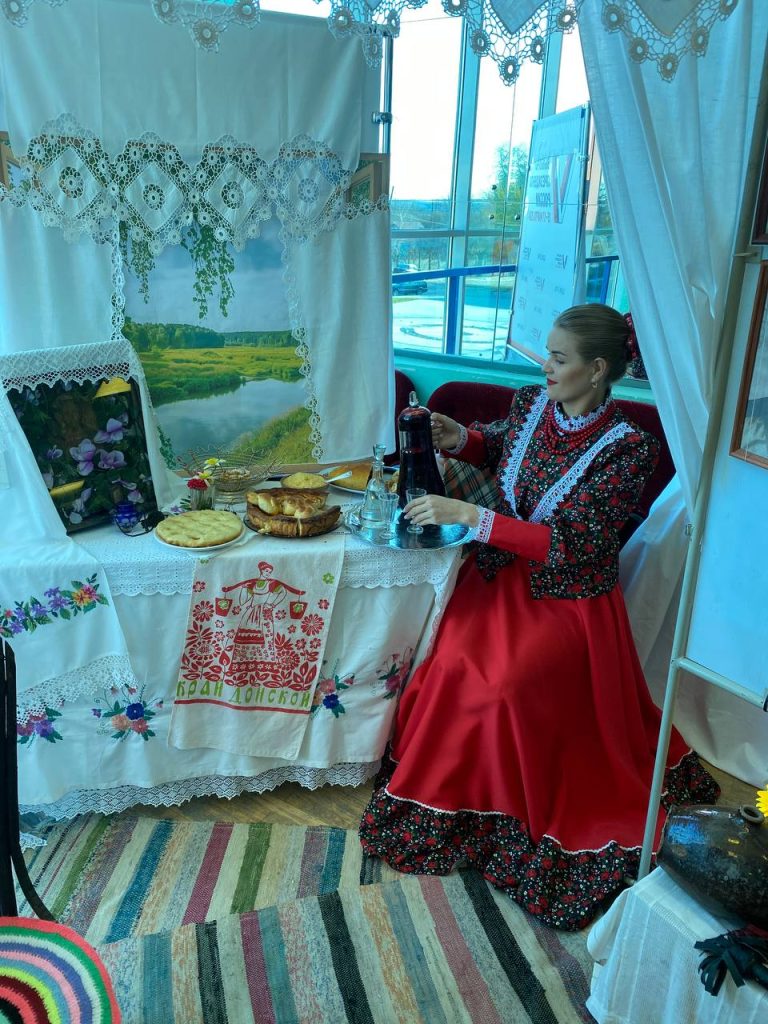 Каждый сельский Дом культуры создал мини-экспозицию, представляющую какой-либо народ или исторически сложившуюся общность людей. Так вот, колундаевцы встречали гостей праздника как белорусы, кружилинцы – как татары, дударевцы – как народы Кавказа. В базковском уголке звучали цыганские напевы, андроповцы разбрасывали конфетки, приветствуя всех на казахский манер, калининцы рассказывали о народах Севера, а терновцы – о чувашах. Богатым столом с самоваром и баранками, заводными частушками и нарядами с расписными русскими кокошниками порадовали всех меркуловцы. А в светлую казачью горницу, украшенную белоснежными подзорами и пёстрыми дерюжками, пригласили дубровцы.