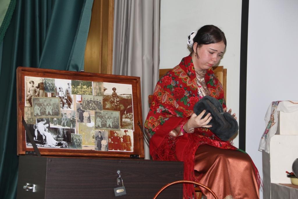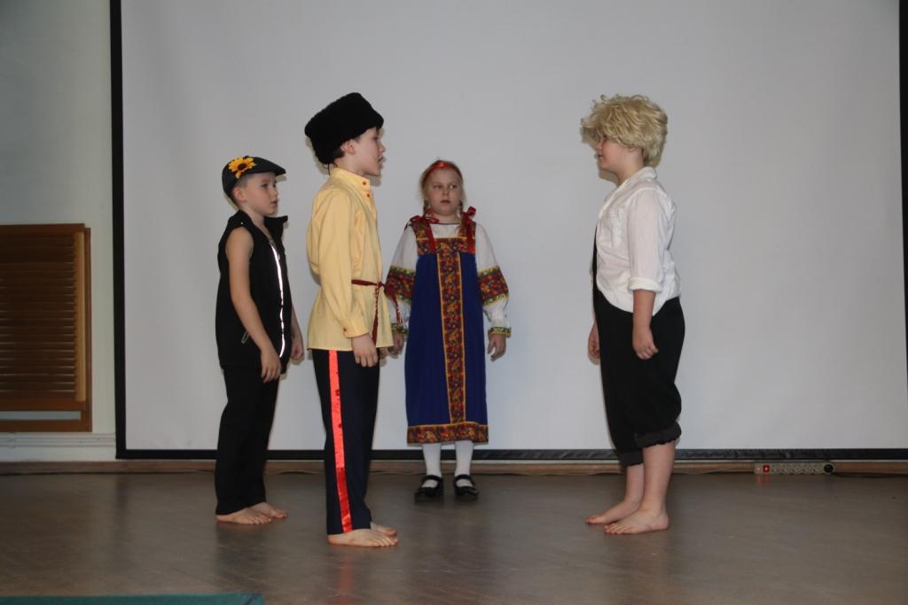 По тому, как ребята выступали на сцене, было видно, что они хорошо знакомы с произведениями Шолохова и проявляют к ним живой интерес. Иначе как бы детям удалось передать всю гамму чувств героев, донести до зрителей и комиссии основную мысль автора? Все дети – и кто выступал сольно, читая отрывки, и кто был задействован в постановке – хорошо справились с поставленной задачей. Самые творческие подготовили декорации. Русская печь, которую смастерили из картона, декоративные плетни, деревянные лавки, застеленные де- рюжками, сундук, крышка которого изнутри обклеена старыми фотографиями, предметы посуды, а также костюмы артистов придавали действу нужную атмосферность.