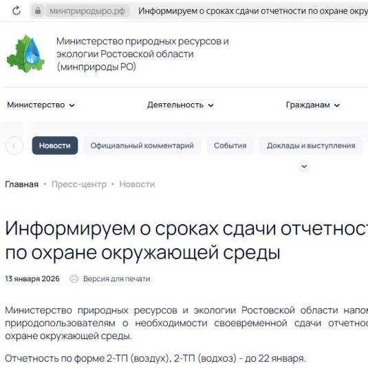 Отчёт о реализации программы производственного экологического контроля необходимо сдать до 25 марта.