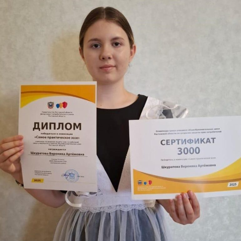 Вероника Шкуратова, ученица 10 класса Базковской школы, стала победителем в номинации «Самое практическое эссе» на региональной олимпиаде по защите прав потребителей.
