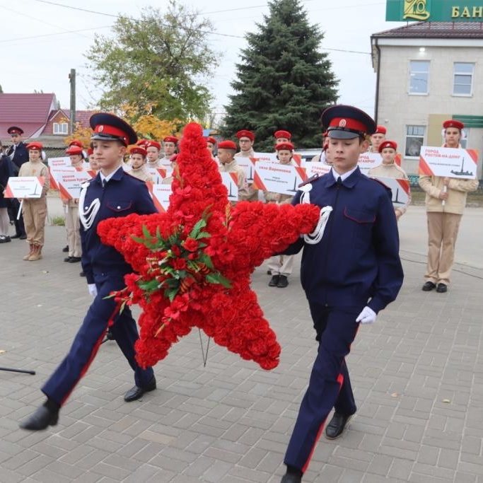 С приветственным словом к присутствующим обратились заместитель главы Шолоховского района по социальным вопросам С.П.Благородов, ветеран СВО Б.В.Сабиров, заместитель главы Чертковского района по социальным вопросам Е.Ю.Погорелова, которая передала переходящий кубок и венок патриотической эстафеты нашим землякам. Минутой молчания почтили память героев участники митинга и возложили цветы. На следующий день, 18 октября, аналогичное мероприятие состоялось у мемориала в станице Еланской, а затем венок и кубок были переданы в Боковский район. Завершится акция, предварительно пройдя в 14 районах Ростовской области и новых регионах, на мемориале Славы музея «Самбекские высоты».