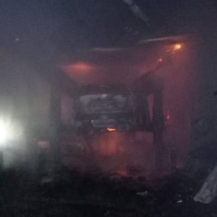 Из здания успели эвакуировать два автомобиля. Один из них, находившийся на автоподъемнике, полностью сгорел.