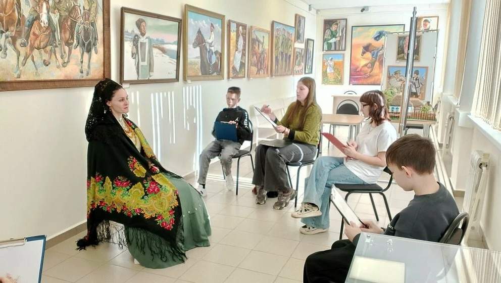 Дети внимательно слушали экскурсовода и подмечали даже малейшие детали. Ведь после их ждало творческое задание: нужно было изобразить с натуры портрет казачки в традиционном головном уборе. Каждый из художников стремился максимально точно изобразить красоту и уникальность головного убора казачки.