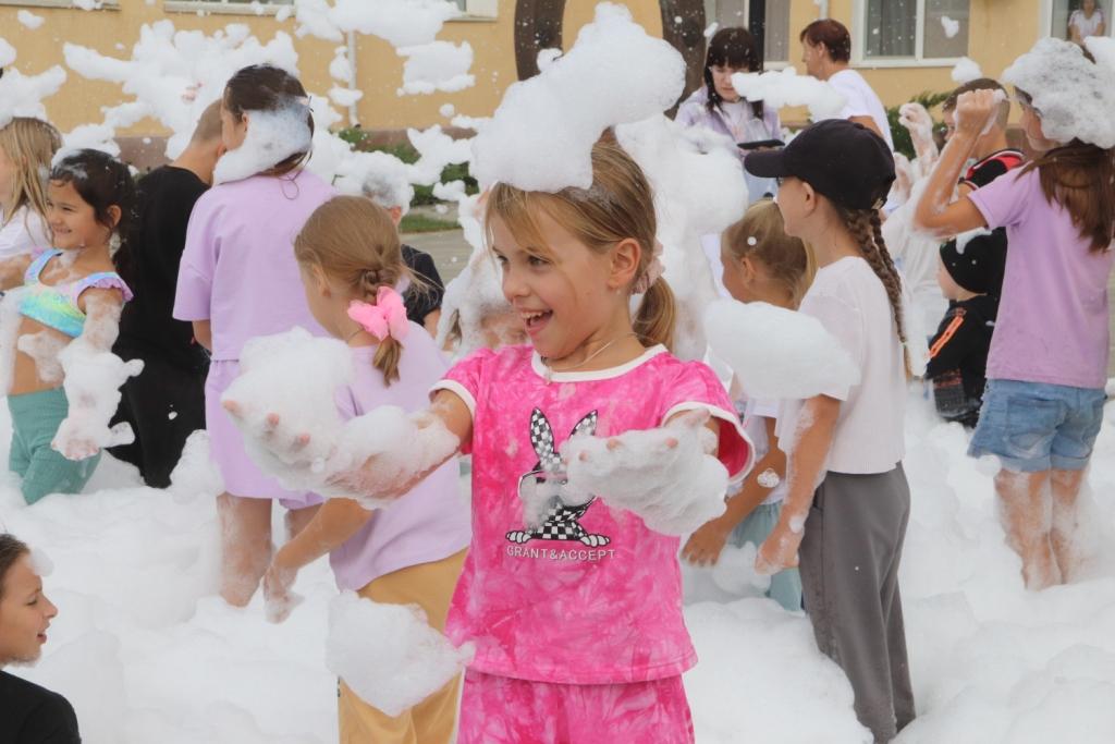 После концерта на площадь перед районным Дворцом культуры ребят всех возрастов зазывали главные герои детской развлекательной программы – Машенька, Петрушка и Баба-яга. А какие конкурсы приготовили ведущие! Детворе было некогда скучать – они водили хороводы, соревновались на скорость и смекалку. Но больше всего ждала наша молодёжь пенное шоу. Малыши весело визжали, прыгая в облака душистых пузырей, ребята постарше фотографировались на память прямо в центре мыльного океана.