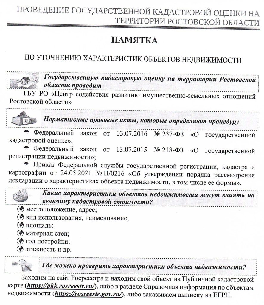 Ознакомиться с памяткой по уточнению характеристик объектов недвижимости, а также с предварительным перечнем земельных участков, подлежащих кадастровой оценке, можно на официальном сайте минимущества Ростовской области.