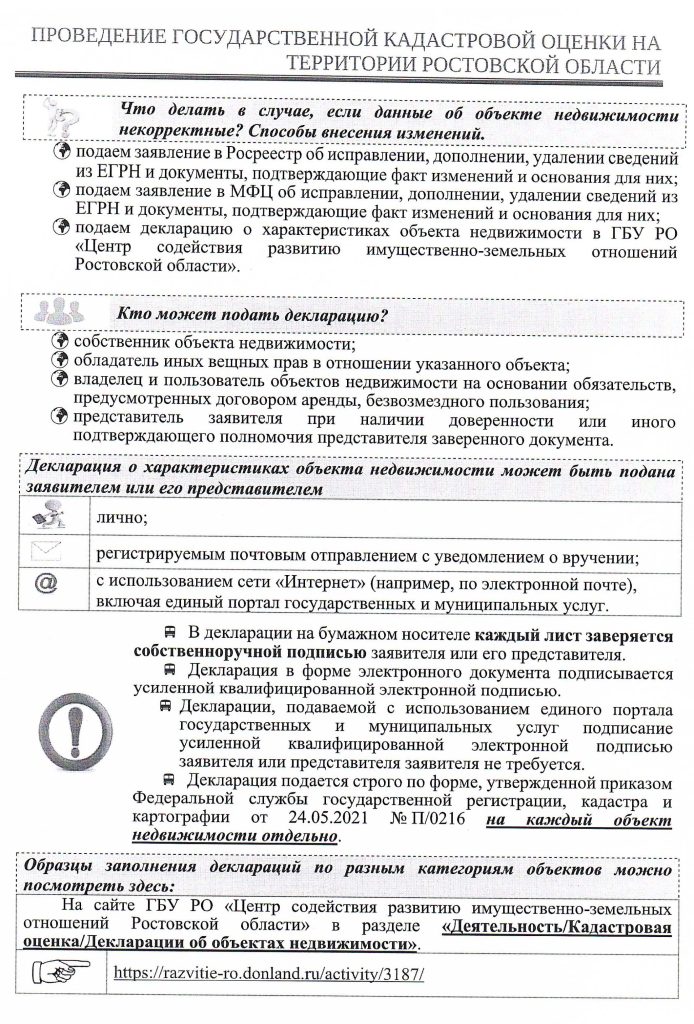 Уточнить характеристики и учесть дополнительные сведения о земельных участках, которые не содержатся в ЕГРН, также возможно путём подачи декларации о характеристиках объектов недвижимости в ГБУ РО «Центр содействия развитию имущественно-земельных отношений».
