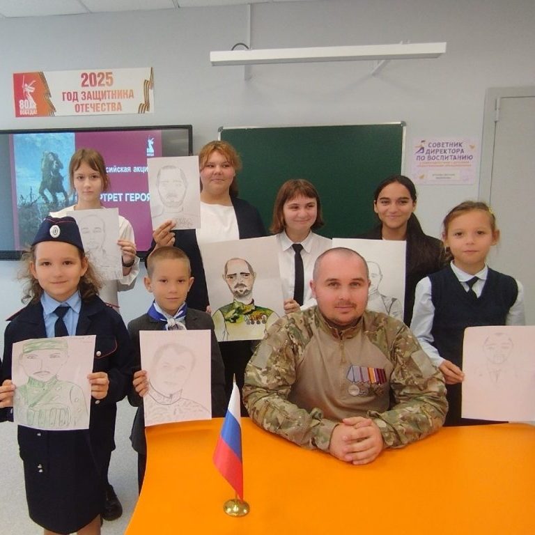 В Меркуловской средней школе прошла Всероссийская акция «Портрет героя – 2025». Ученики встретились с ветераном специальной военной операции Алексеем Алексеевичем Колмыковым. Акция объединила ребят в стремлении отдать дань уважения защитникам Родины.