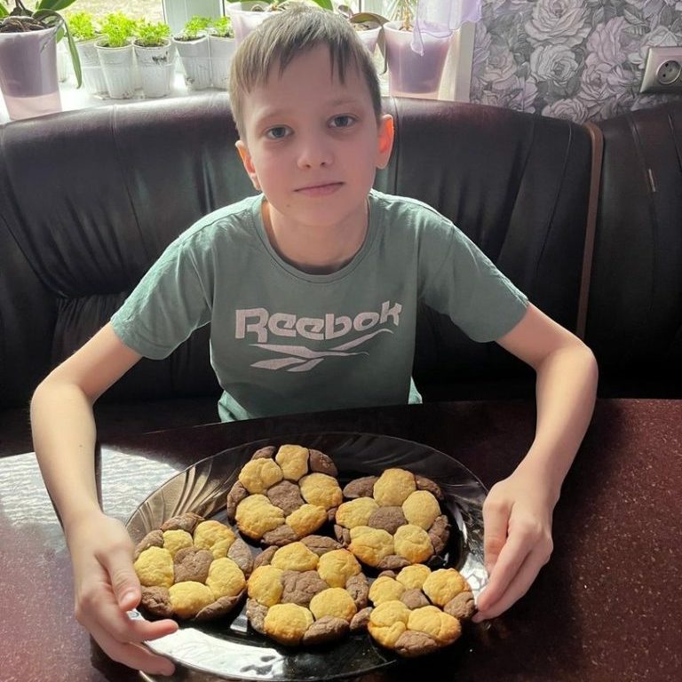 Егор испёк печенье в форме мяча с классическим рисунком из чёрных и белых многоугольников. Сам процесс приготовления выпечки для Егора был увлекательным, а результат – ароматные рассыпчатые съедобные мячики – вкусным. Вот так гимназист поучаствовал в акции и самостоятельно приготовил не просто печенье, а десерт для настоящего спортсмена!