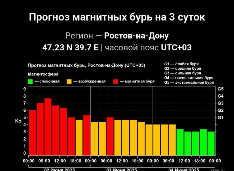 По прогнозу ученых, в ближайшие двое суток магнитосфера Ростовской области продолжит бушевать на уровнях от G1 (слабый) до G4 (очень сильный).